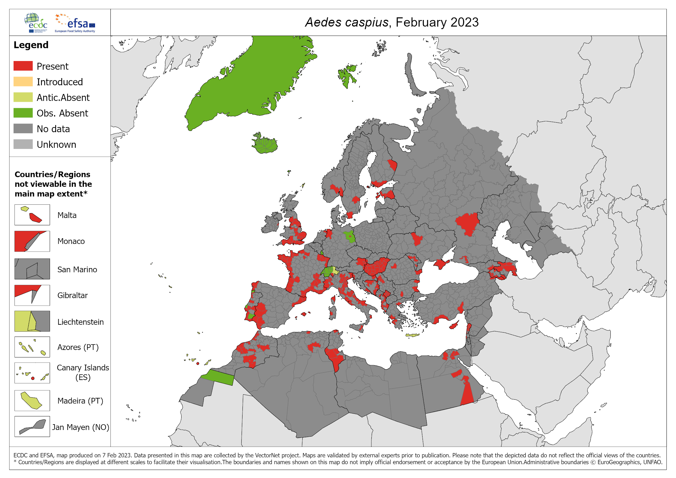 Aedes caspius - current known distribution: February 2023 - EN - [PNG-828.02 KB]