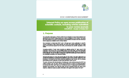 ECDC policy on open access publication of scientific content, including articles submitted to peer review journals