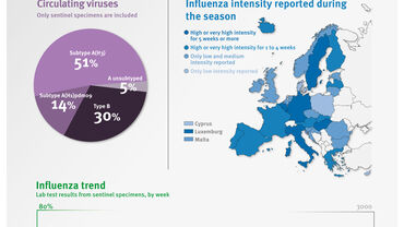 Active circulation of influenza has started late in Europe in the 2013-2014 season, with a different timing across EU/EEA countries, states the annual ECDC risk assessment on seasonal influenza. The first countries affected have been Bulgaria, Greece, Portugal and Spain, where the A(H1)pdm09 influenza virus has dominated. Without any specific geographic pattern, influenza activity has since spread rapidly across Europe. In Bulgaria, Portugal and Spain, the season peaked in weeks 4 and 5/2014, while influenza activity still continues to increase in Greece.